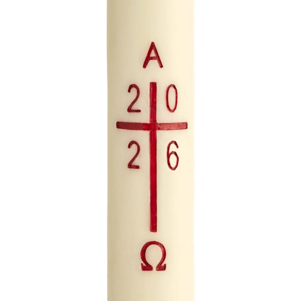 Les chiffres 2026 inscrivent ce mystère dans le temps présent, renouvelant chaque année la victoire de la vie sur la mort. Fabriqué avec un mélange contenant de la cire d’abeille, ce cierge pascal exprime la pureté et l’offrande de la création, symboles de la lumière véritable du Christ.