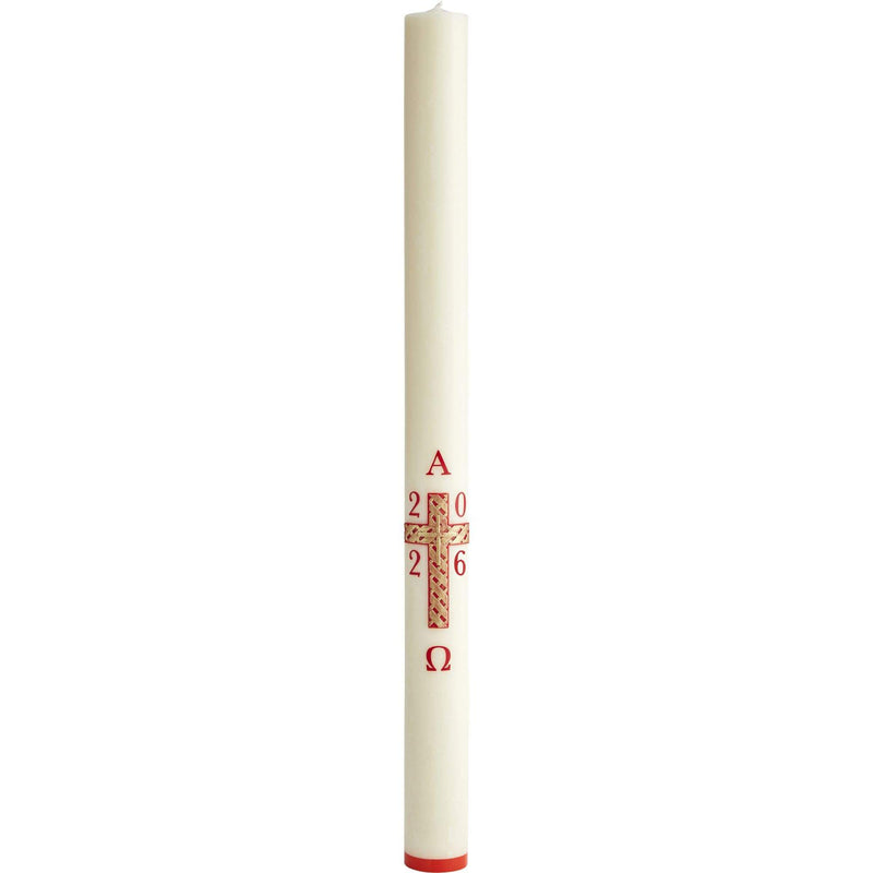 Cierge pascal avec décoration Croix Broderie Liturgique fabriqué à partir de cire d'abeille ou cire classique. Décor en cire patiné et peint à la main avec relief.