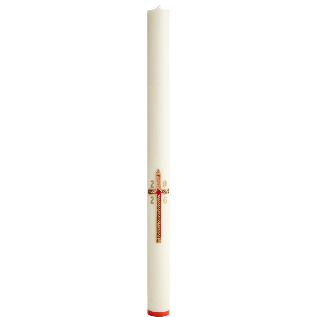 Cierge pascal avec décoration Croix Épi façonné en cire classique ou cire d'abeille. Ornement décoratif en cire patiné, en relief, peint à la main.