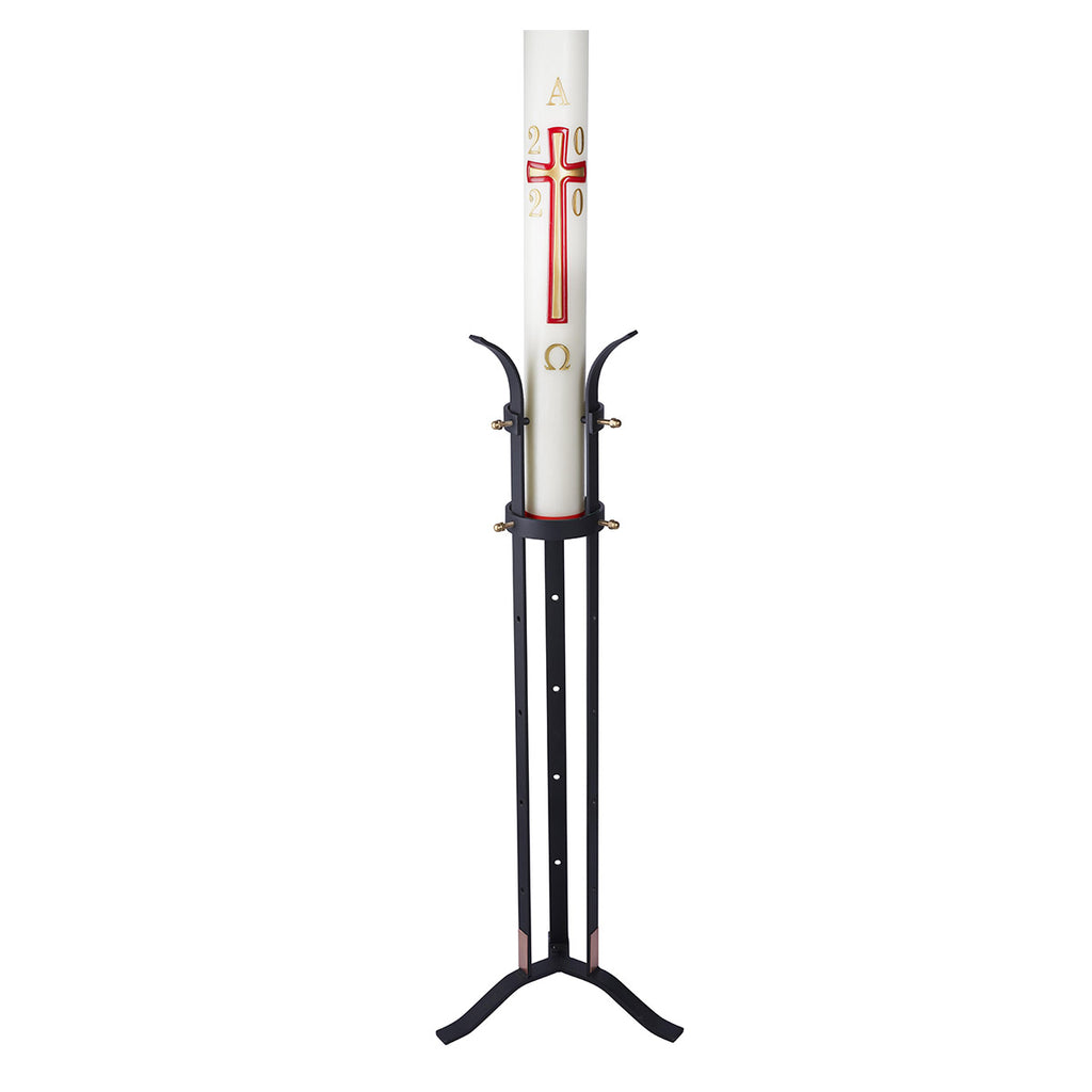 Selon le principe des bougeoirs d'autrefois, la hauteur du cierge pascal se règle à différents niveaux en fonction de son usure. Le cierge est toujours maintenu droit.